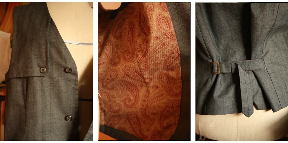 DES: Crocodile Collection Vest,Secondhand,Mens Size S,Pinstripe,European paisleys fabric lining,in good condition.